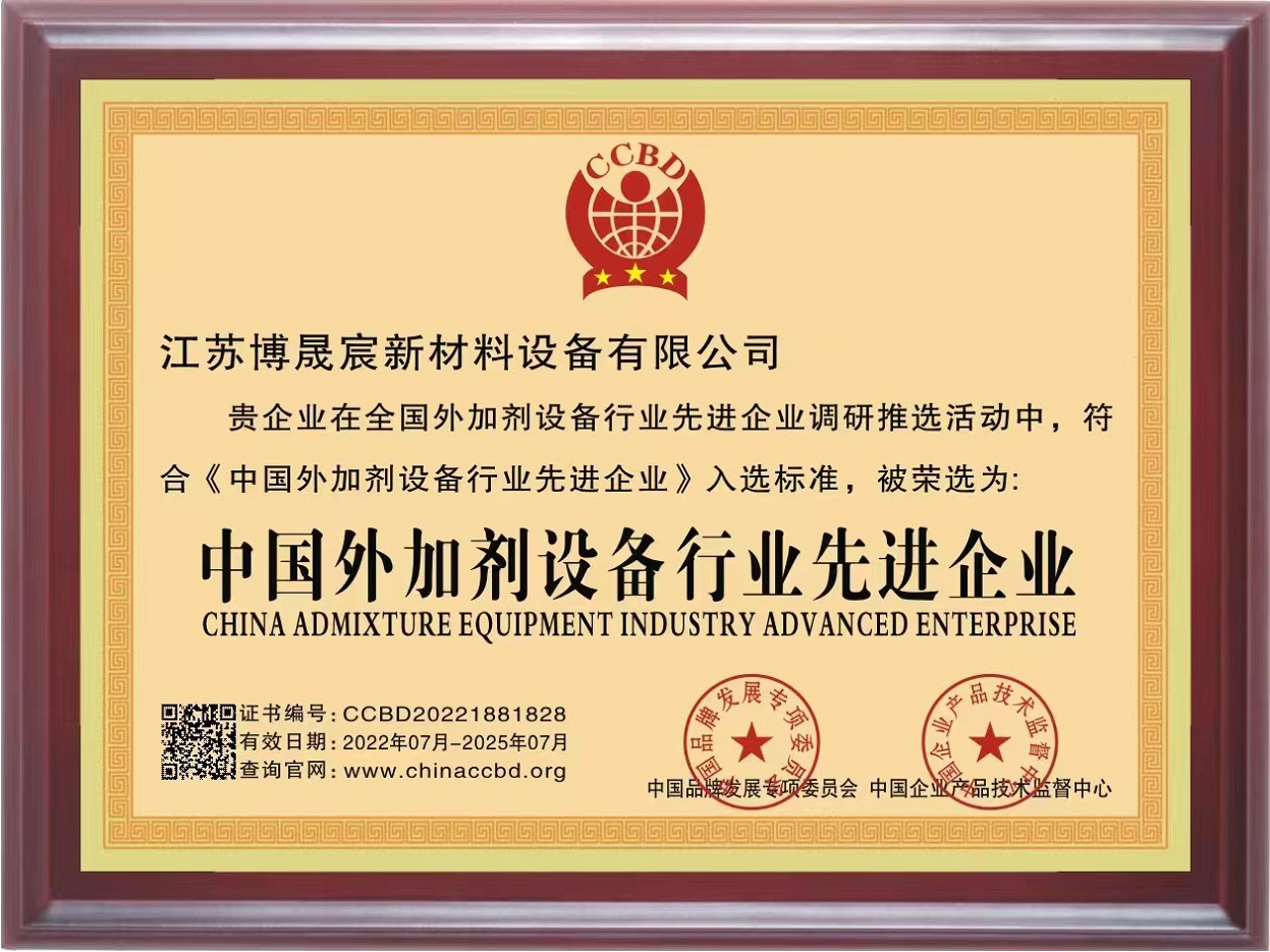 江蘇博晟宸新材料設(shè)備有限公司(以下簡稱博晟宸)專注于混凝土外加劑生產(chǎn)設(shè)備的研發(fā)與制造!我們秉承“誠信經(jīng)營,用心服務(wù)”的企業(yè)宗旨,竭誠為您提供優(yōu)質(zhì)的產(chǎn)品和滿意的服務(wù)!我們注重細(xì)節(jié),不斷創(chuàng)新,實(shí)現(xiàn)合成復(fù)配設(shè)備智能化,一機(jī)多用。竭盡全力為客戶節(jié)省成本,免費(fèi)提供建廠方案的指導(dǎo),免費(fèi)提供生產(chǎn)配方,免費(fèi)提供技術(shù)支持!